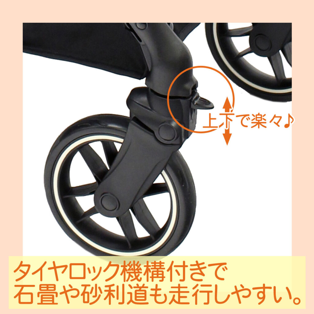 タイヤをロックすれば石畳や砂利道での走行性がアップ。